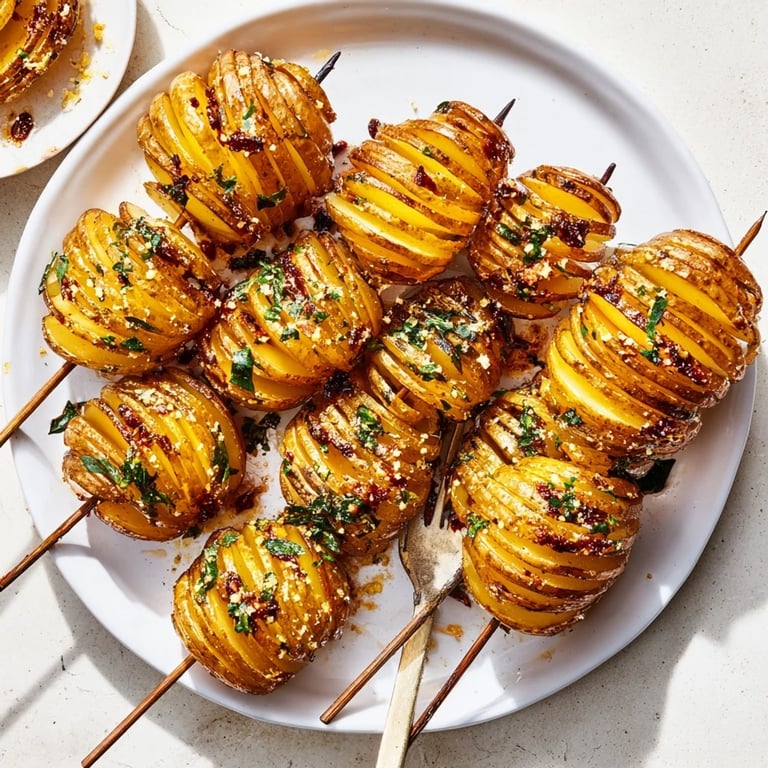 - Place the skewered potatoes in the air fryer basket, making sure they do not touch. Air-fry for 20–25 minutes, turning halfway through, until golden and crispy.
