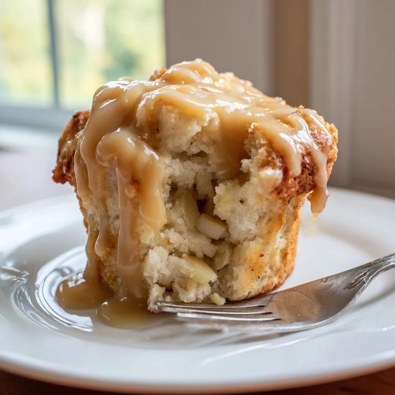 Save Moist, tender scone-style muffins bursting with fresh apples and topped with a decadent caramel glaze—perfect for breakfast or an indulgent snack.