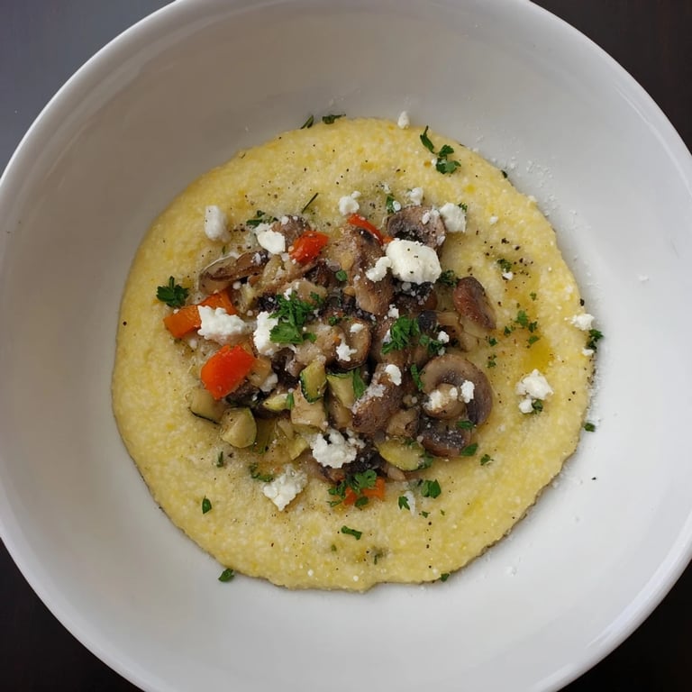 Save A comforting, budget-friendly dish featuring creamy polenta as the base, topped with a variety of flavorful, customizable toppings for a satisfying meal.