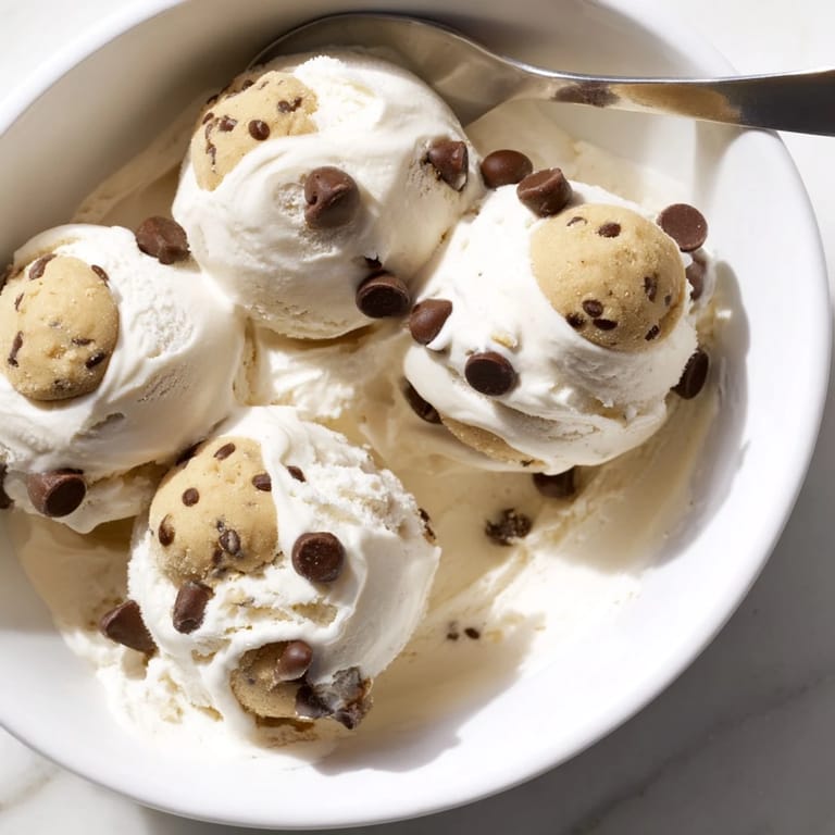 Save A creamy, protein-packed ice cream featuring whipped cottage cheese and bursts of edible chocolate chip cookie dough, perfect for a guilt-free frozen treat.