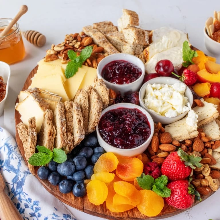 Save A vibrant and beautiful brunch board inspired by jam girl summer, this spread unites jams, cheeses, fresh fruits, and artisan breads for both a sweet and savory gathering. Perfect for breakfast celebrations or leisurely entertaining, it turns day-to-day ingredients into a centerpiece.