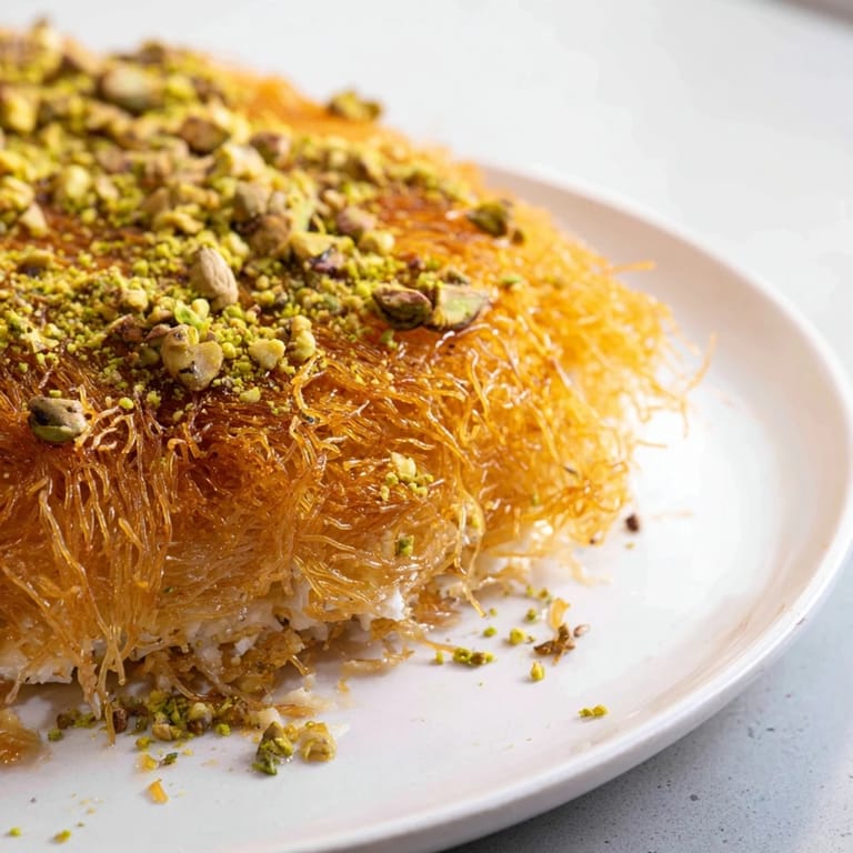 Save The first time I watched my grandmother make knafeh, I was mesmerized by the sound of it hitting the hot oil—a sharp, immediate sizzle that meant something magical was about to happen. She'd spent hours soaking the Akawi cheese, changing the water with the patience of someone who understood that shortcuts never tasted as good. When she pulled it from the oven, golden and crackling, she didn't hesitate before flipping it onto the platter in one confident motion. I asked her how she knew it wouldn't break apart, and she just smiled, pouring that fragrant syrup over the top like she was anointing something sacred. That moment taught me that knafeh isn't just dessert—it's theater, tradition, and comfort all wrapped in crispy phyllo.