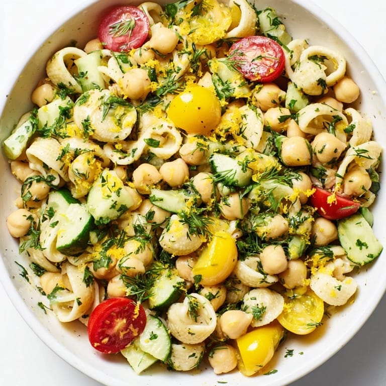 Yes, this salad actually improves when made in advance. Prepare it up to 2 days ahead and store in an airtight container in the refrigerator. The flavors meld beautifully, and the pasta absorbs the lemon dressing. Add fresh herbs just before serving if you prefer them more vibrant.