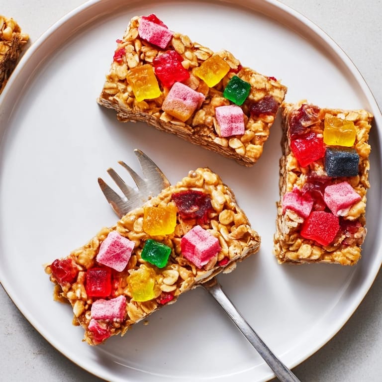 Save A playful, colorful treat featuring chewy homemade gummies, crispy freeze-dried candies, and a wholesome oat base: perfect for snack lovers and candy fans alike.