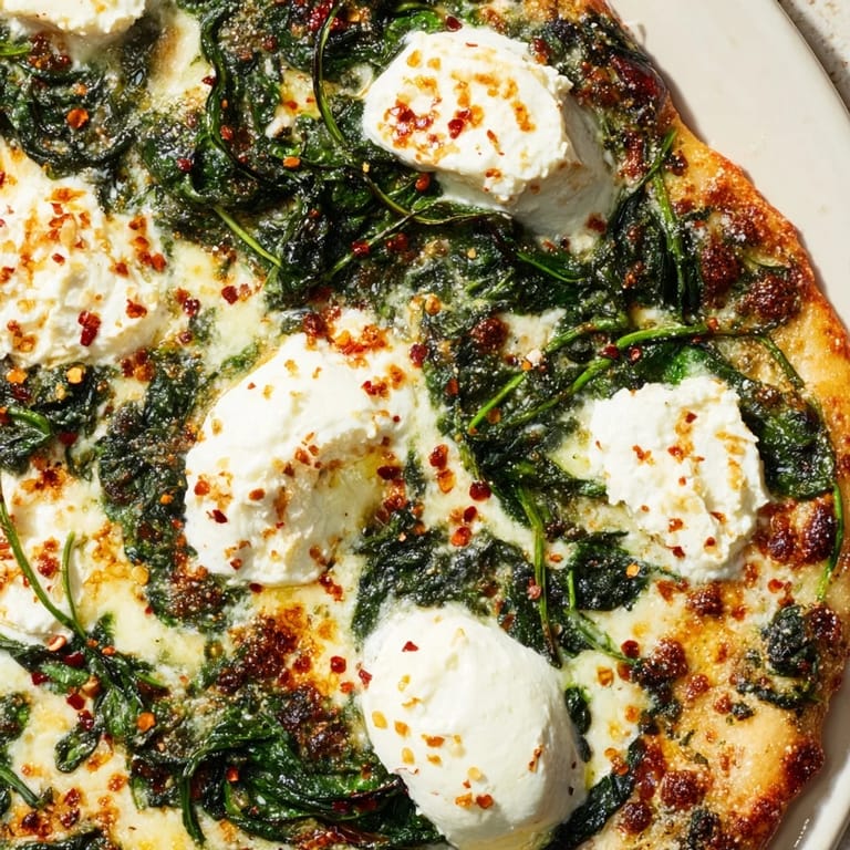 This pizza is incredibly flexible once you understand the base. I've added thinly sliced red onion for a bit of sharpness, tucked in sun-dried tomatoes for a sweet-tart punch, and even scattered fresh arugula on top right after baking for a peppery finish. Sometimes I'll crack an egg in the center before baking and let it cook on the pizza, the runny yolk mixing with the ricotta is absolutely heavenly. You can swap the spinach for kale or chard, just make sure to sauté it down first so it doesn't release moisture.