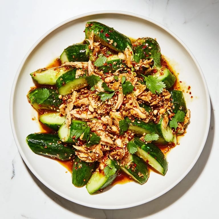 The beauty of this recipe is that it's flexible enough to work with what you have, but structured enough that it won't fall apart if you improvise. I've added roasted peanuts for extra protein and crunch, thrown in thinly sliced radishes for color, and even stirred in a little chili crisp instead of dry flakes when I wanted more texture. The core—smashed cucumber, dressing, chicken—is what makes it work, but you can absolutely play around the edges.