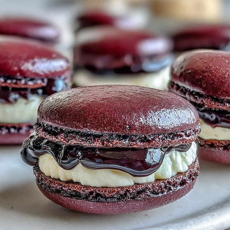 Blackcurrants taste like tart berries had an argument with plum jam and came up with something that tastes refined instead of simple. The flavor surprised me the first time I used it, because it's not sweet like raspberries or mild like blueberries, it's unapologetically bold and demands respect. When you pair this with the delicate sweetness of the macaron shell and creamy white chocolate, you get a balance that feels intentional and mature. The lemon juice I add isn't really about lemon flavor, it's about cutting through richness and keeping the whole thing from feeling cloying, which is the move that made people actually taste the blackcurrant instead of just sweet.