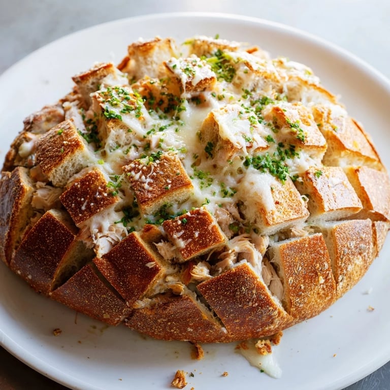 A comforting, gooey pull-apart bread loaded with succulent leftover chicken, melty cheese, and savory herbs—perfect for sharing at parties or as a cozy family meal.