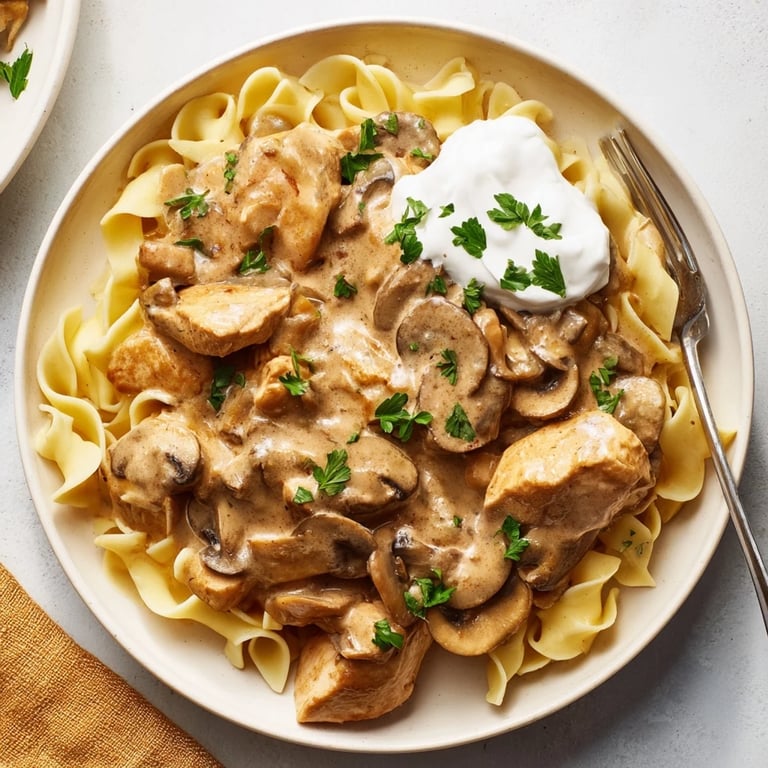 This creamy chicken stroganoff is sure to impress with its comforting flavors and ease of preparation.