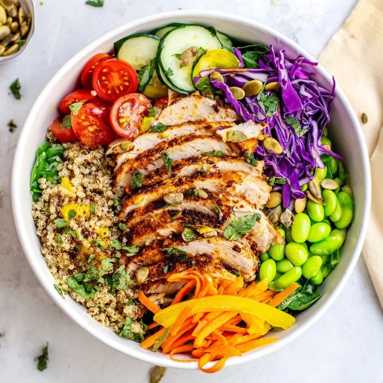 I always look forward to assembling these bowls – the pops of color from each vegetable make it feel almost like crafting artwork. It is a recipe I rely on when I want a quick nutritious meal that stays fresh throughout the week.