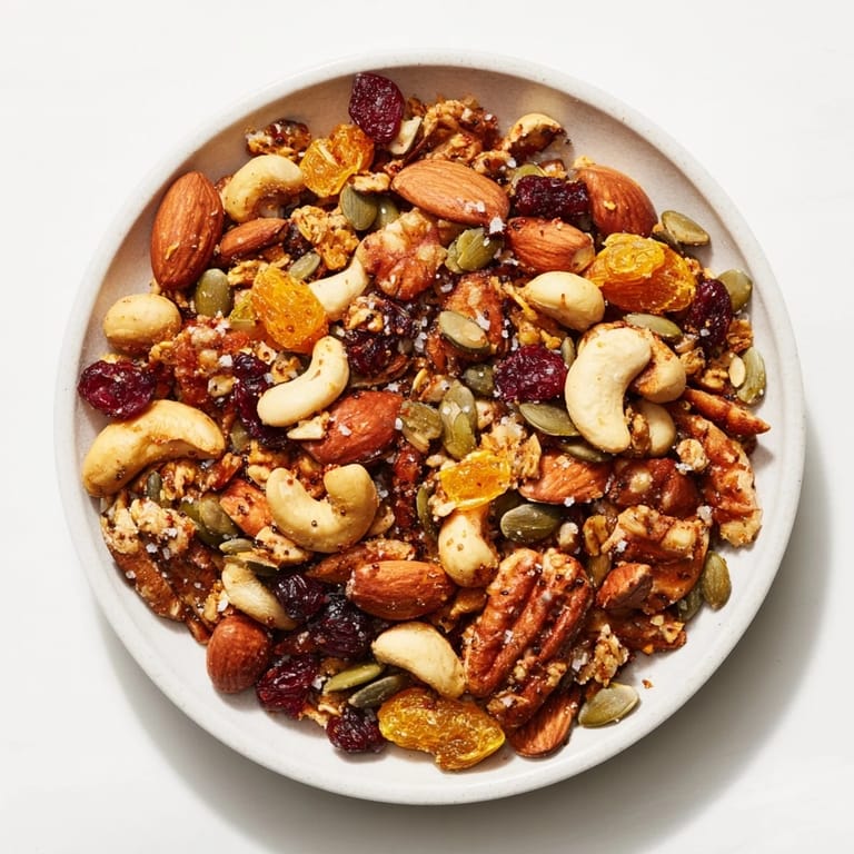 Save A crunchy, wholesome snack mix featuring roasted nuts, seeds, dried fruits, and a hint of spice&mdashperfect for an energy boost or sharing at gatherings.