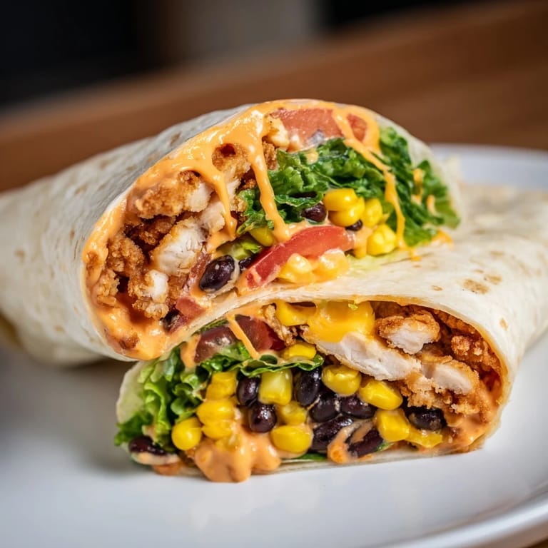 Save A vibrant, flavor-packed wrap filled with crispy chicken tenders, fresh vegetables, black beans, and a creamy, zesty southwest dressing—perfect for a quick family meal or satisfying lunch.