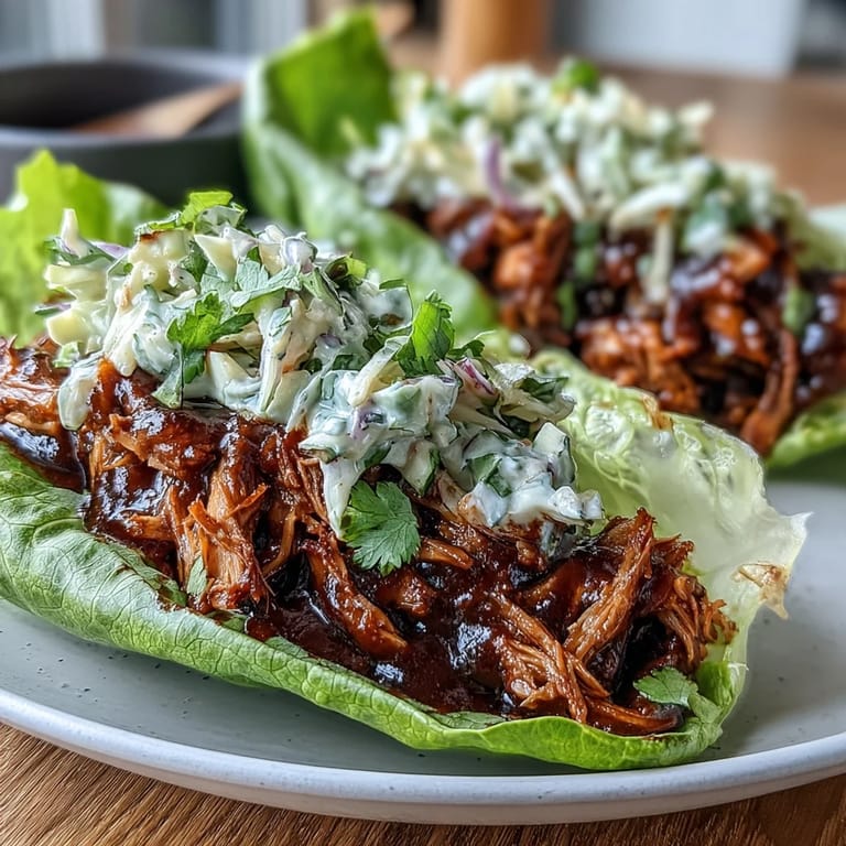 - Lay out your lettuce leaves and spoon a generous amount of hot BBQ jackfruit into each one. Top with a scoop of creamy slaw, a scatter of fresh cilantro, and squeeze a lime wedge over the top. The contrast between warm and cool, smoky and bright, is what makes these sing.